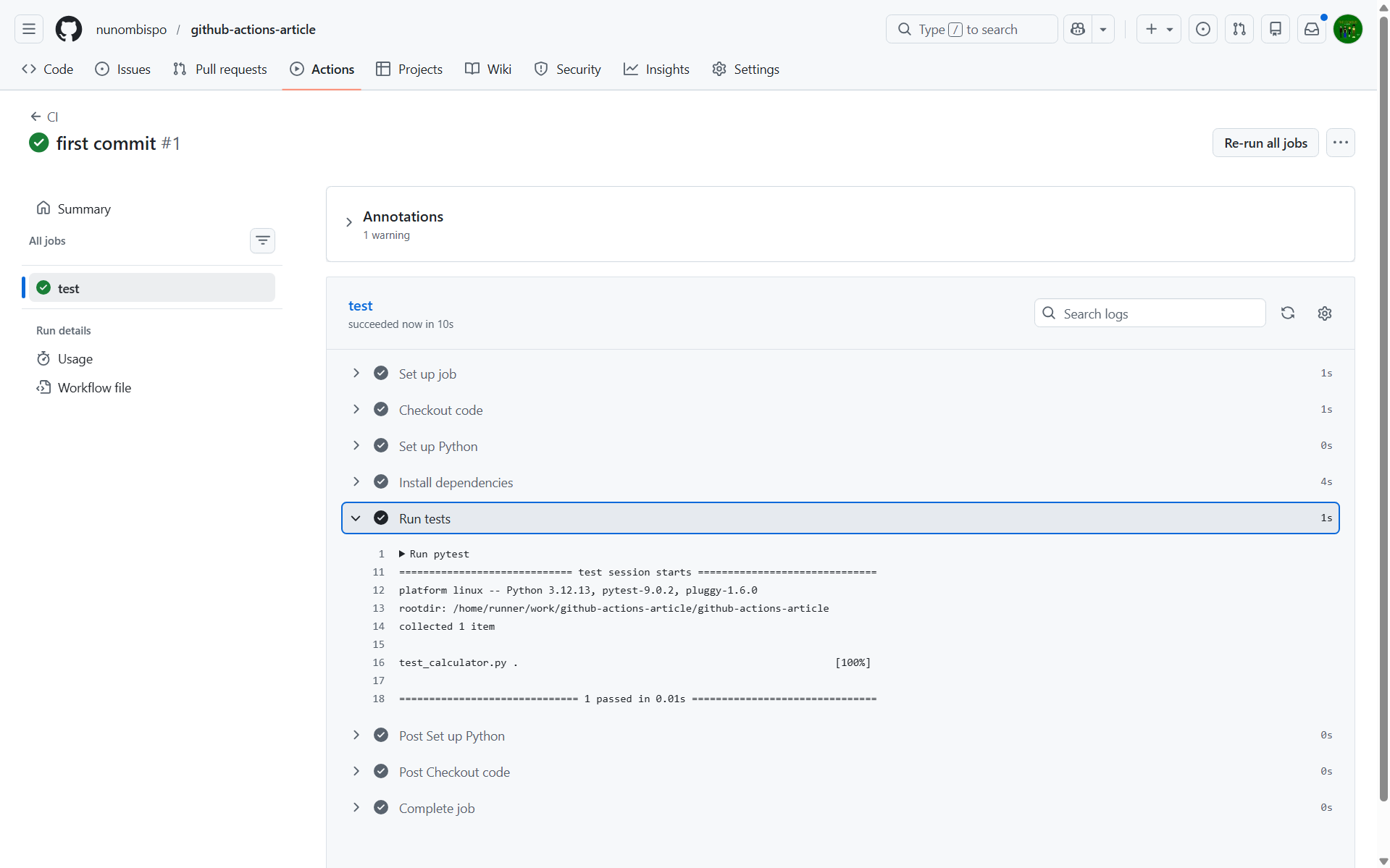 └── Step: run pytest