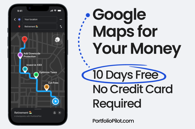 Stop guessing your financial route. PortfolioPilot.com is like Google Maps for your finances - guiding you step by step, from cutting fees to planning for retirement. Get personal financial advice today, free for 10 days, no credit card required.